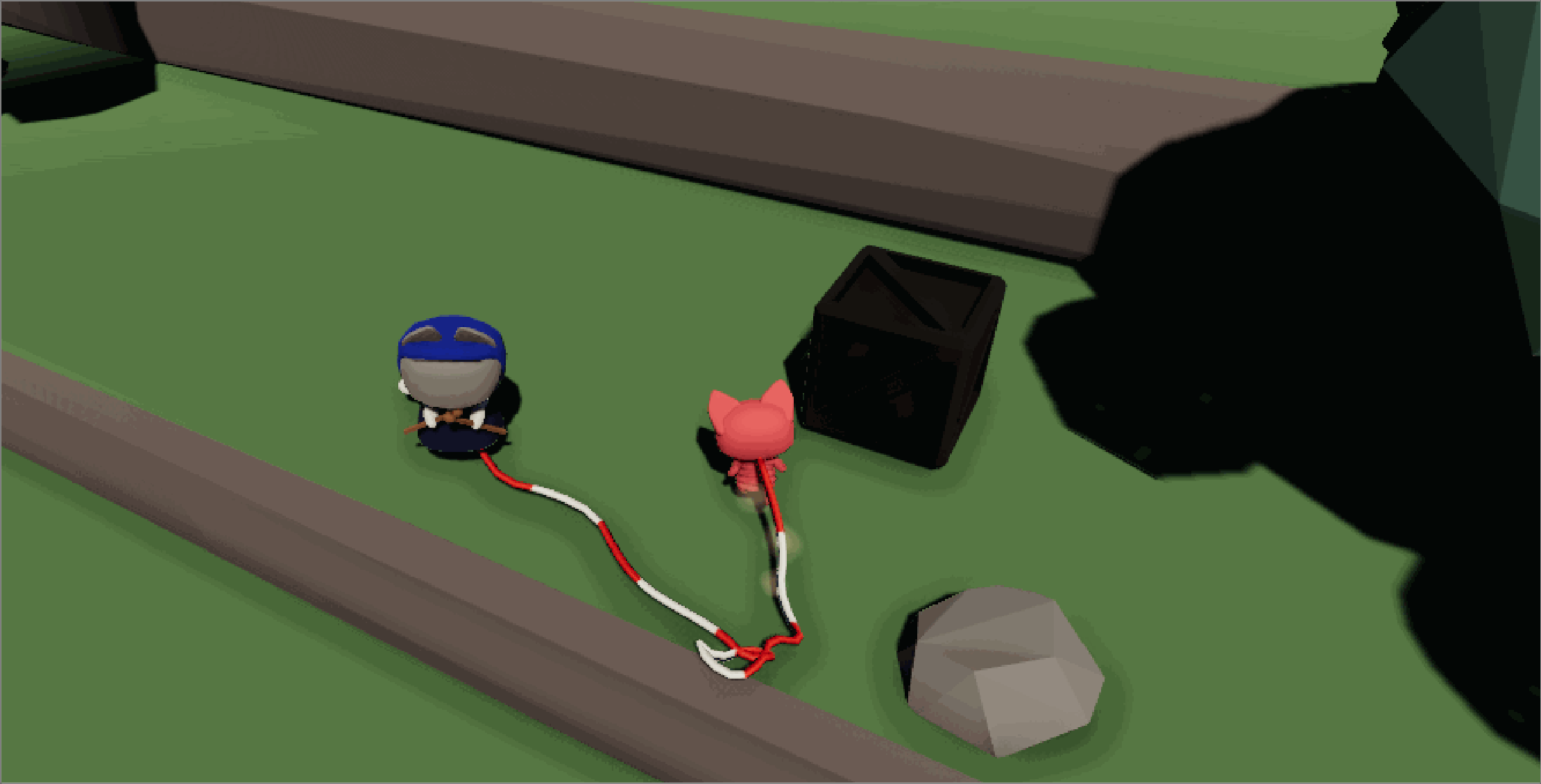Scarf Cats is a co-op adventure game where you and a friend work together to solve puzzles and traverse the world, all while tied together by a scarf!